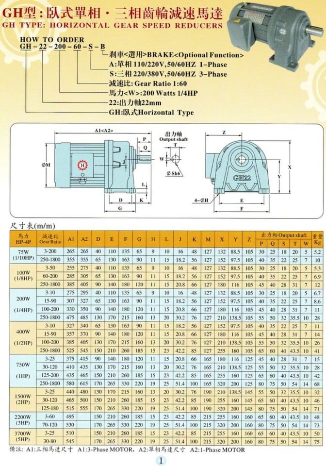 Các mô hình sản phẩm chính là : Động cơ giảm tốc 1/8 HP - 10HP/ ( 100W - 7500W , Tỷ lệ giảm tốc 1:3 ~ 1:1800 , một pha, ba pha, dọc, ngang, hai trục, thẳng Loại, có phanh, vv Sản phẩm tính năng chính : kích thước nhỏ, trọng lượng nhẹ, không gây tiếng ồn, bảo trì miễn phí, và đặc điểm vượt trội khác của tiết kiệm năng lượng.